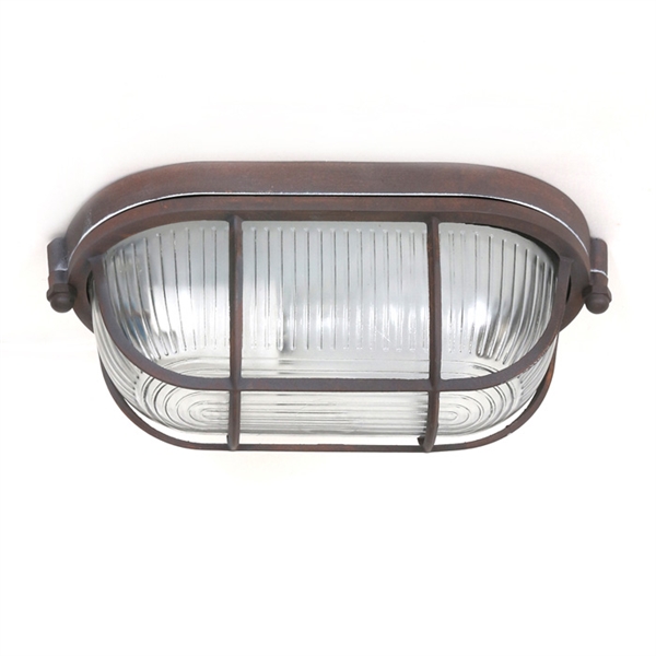 Ceiling lamp / bulkhead lamp in rustic brown lacquered metal with clear glass.