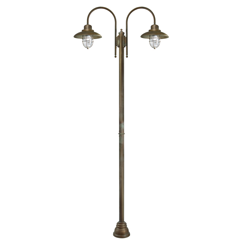 The PATIO CAGE lamp is made of solid brass with clear or frosted glass.