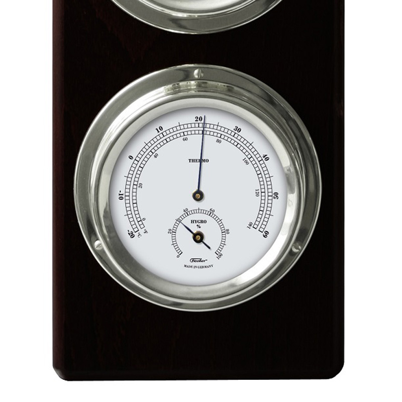 Instrument scale Clock Arabic numerals 12 hours, Barometer 960-1060 hPa, Thermometer C° + F° incl. Hygrometer with Relative Humidity, English text